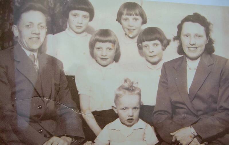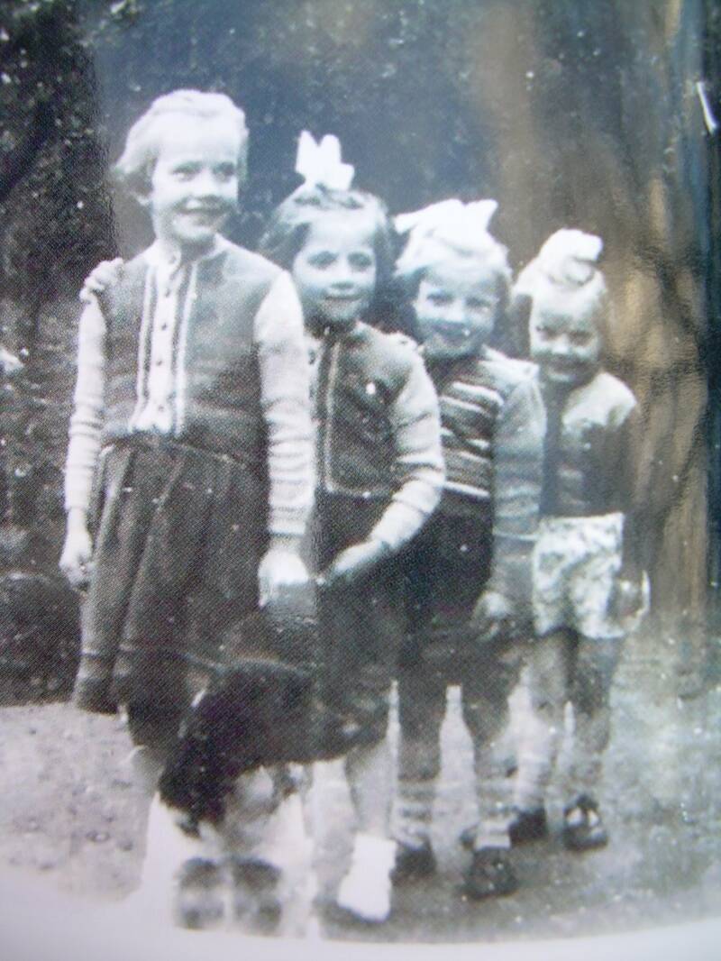 Foto uit 1957: Johan, Nellie, Annie, Mia, Hans, Francien, Maria (Miet).